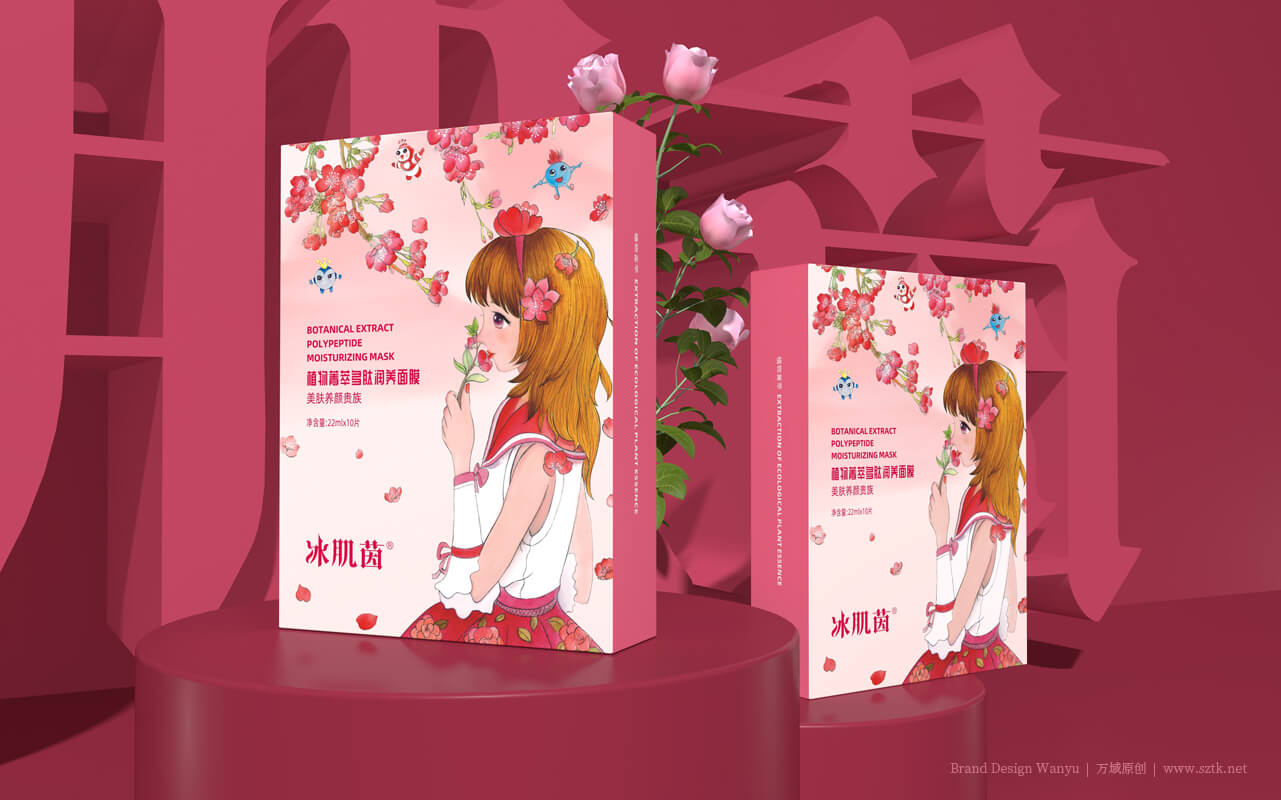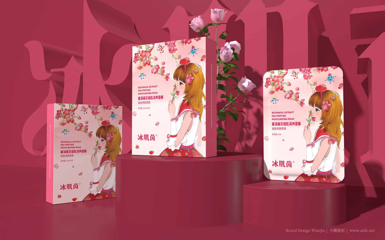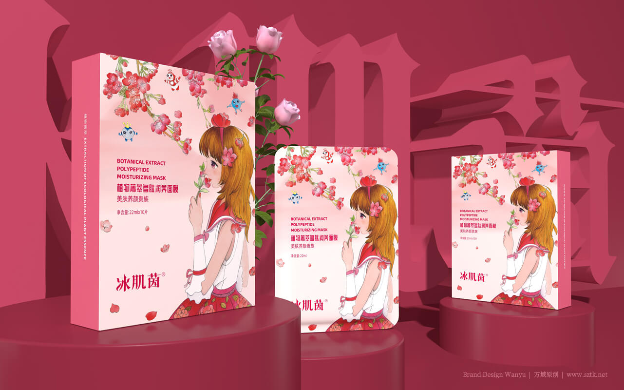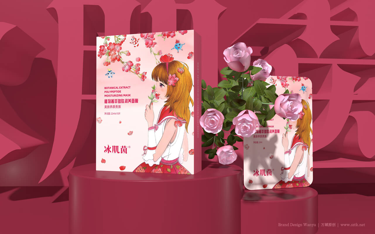 美業中擁有自己的品牌IP,是首創!更是發展趨勢! 特別是80/90/00后已成為消費主力軍,他們/她們對 動漫IP有著耳濡目染的親切感和認知認同無免疫力。 就像《三只松鼠》堅果電商品牌的三只松鼠IP。IP的力量大家已知曉,我們在包裝及宣傳畫面創作中,以IP形象塑造冰肌茵植物多肽面膜視覺錘:IP男主角:肽公子,IP女主角:因子寶貝。IP三核心元素:勝肽寶貝 + 勝肽精靈 + 因子精靈。品牌IP“肽公子”:是一千多種肽的總稱。人體內其存量的增多或減少,直接引起逐漸衰老和引發疾病。自1902年到2018年已有23位科學家研究肽而獲得15個諾貝爾獎,并證實90%以上的衰老和疾病都與缺肽有關。品牌IP:因子寶貝。細胞生長因子是參與人體修復、調控和再生細臉的功能蛋白。人體內沒有了她就會失去一切生命活動。她隨著年齡的增長會逐漸減少而引發各種衰老癥狀。人體皮膚內細胞生長因子含量的多少直接決定皮膚的年輕程度。因此被科學家們譽為“美麗因子”。